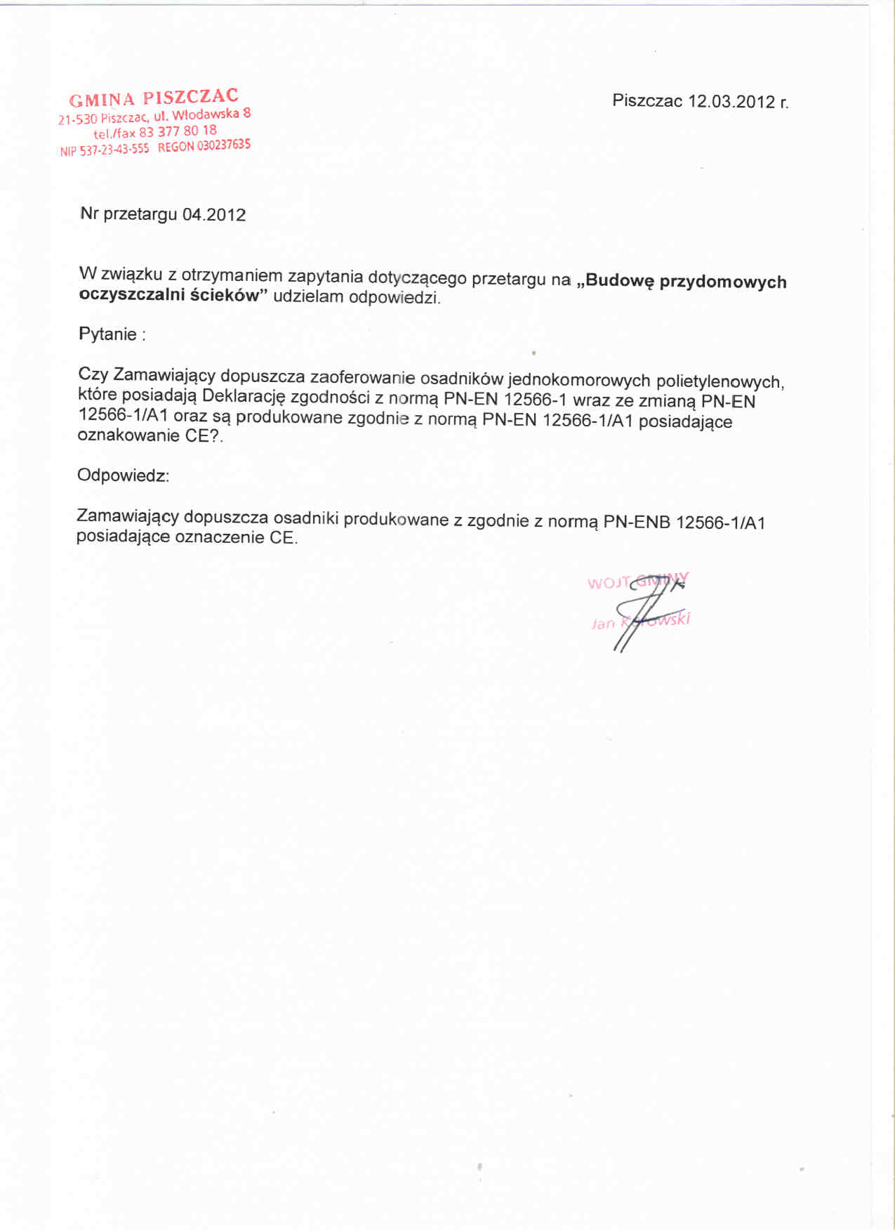 - Odpowiedź na pytanie z dnia 12.03.2012